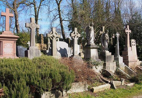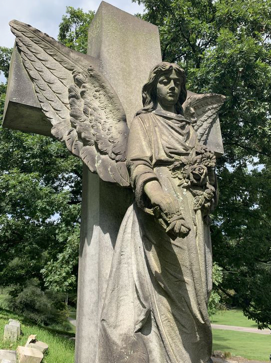 This cross has a circle at the intersection, symbolizing eternity and God’s endless love. Celtic crosses are commonly found in cemeteries of Irish or Scottish backgrounds, reflecting the cultural heritage of the deceased.